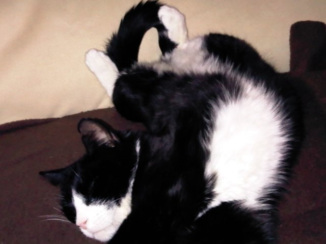 It was unlucky for Ella that Ringo turned up, because I found Ringo in the kitchen, doing what tomcat’s do best.