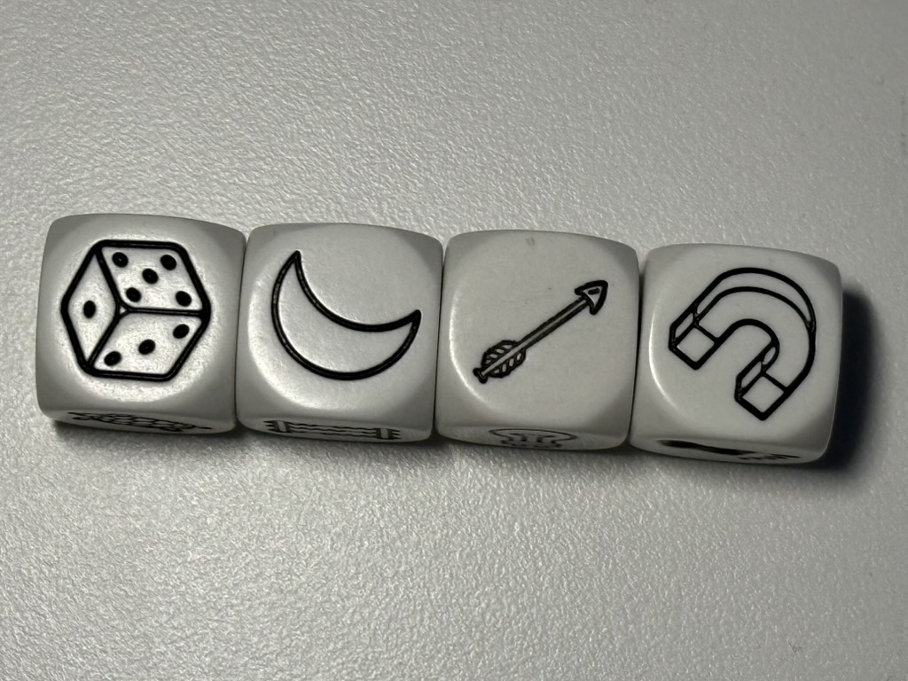 I realized that the writing prompts this week, were all titles of songs to do with dancing (not a sport I’ve ever been very proficient at!), but none of them struck a chord with me… ha ha. The fact that the prompts were about dancing caused me to recall “Dancing with the Moonlit Knight,” which is the title of a song by the progressive rock band Genesis. I’ve enjoyed their music since seeing them live in the 1970s near the beginning of their long and amazing career. To help me out, I threw—or cast, however you want to take it—four Rory Story Cubes (which incidentally I picked up on the Jet2 in-flight shop on one of my trips to Malaga, Spain). The story in no way follows the lyrics of the song; I only used the title for inspiration. If you’re interested you can see the band playing the song live in 1973 here.